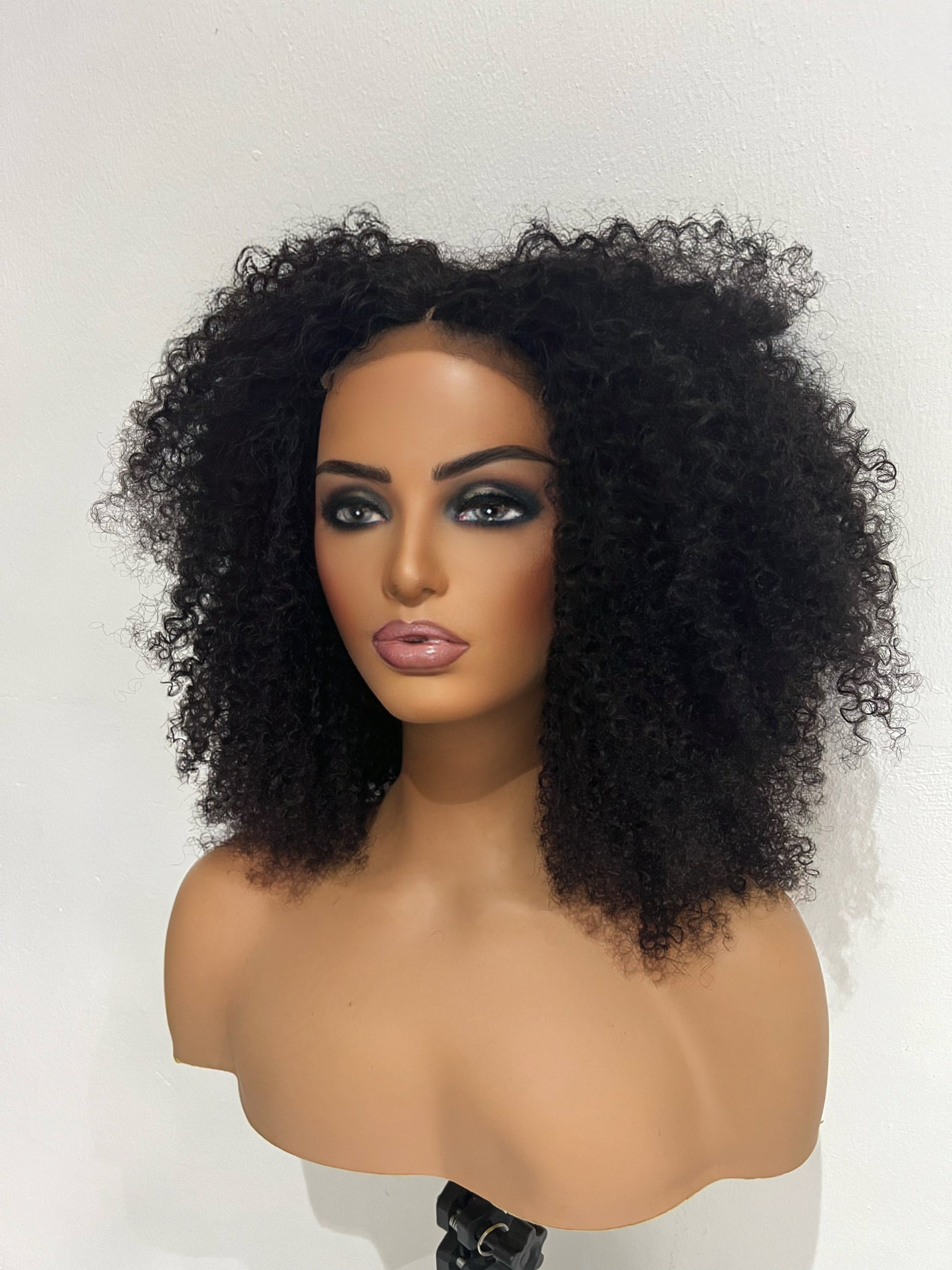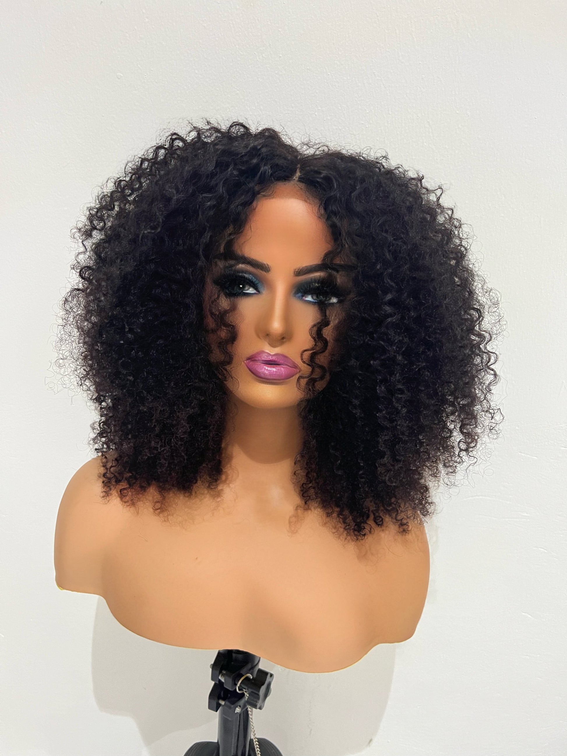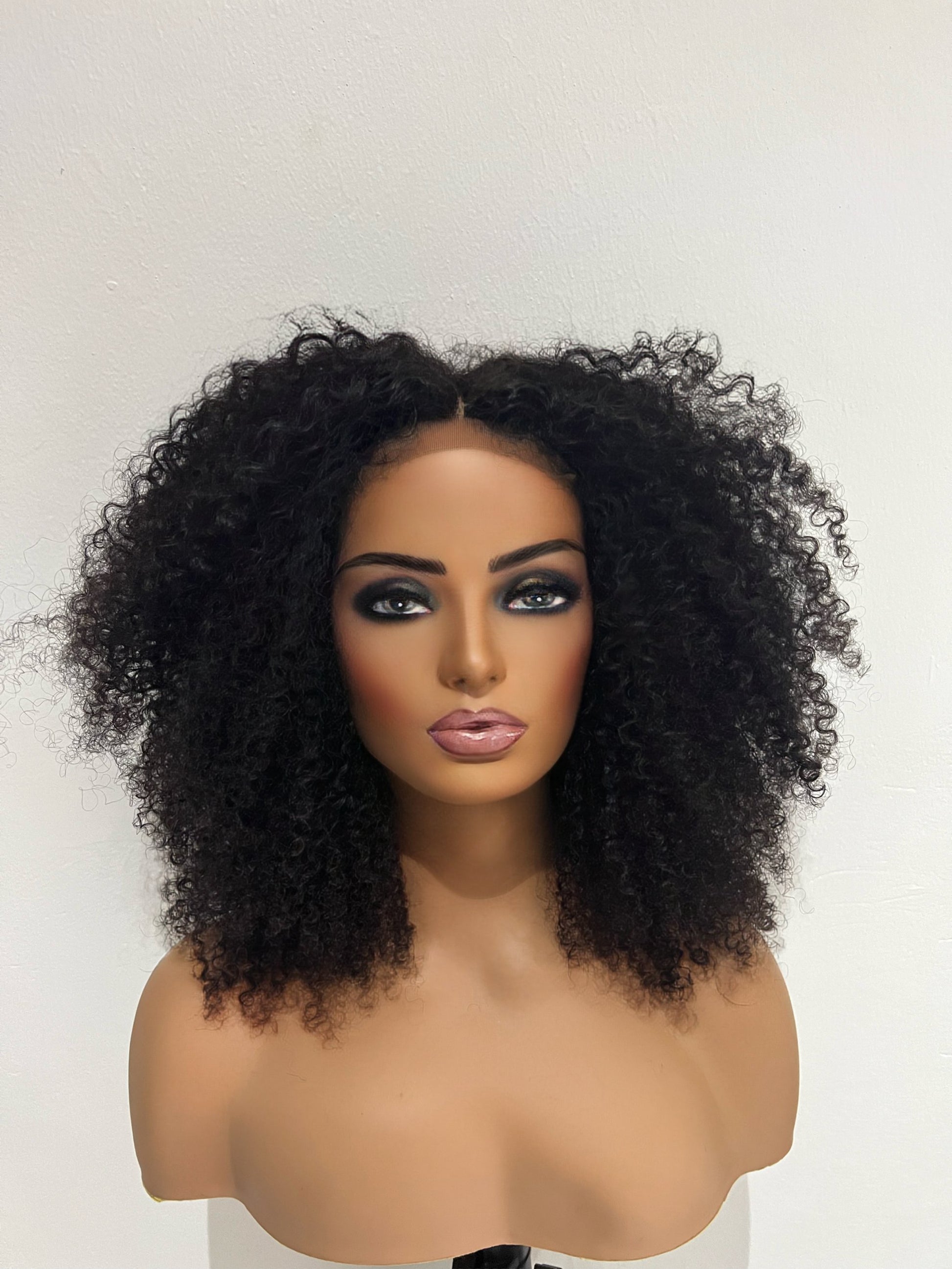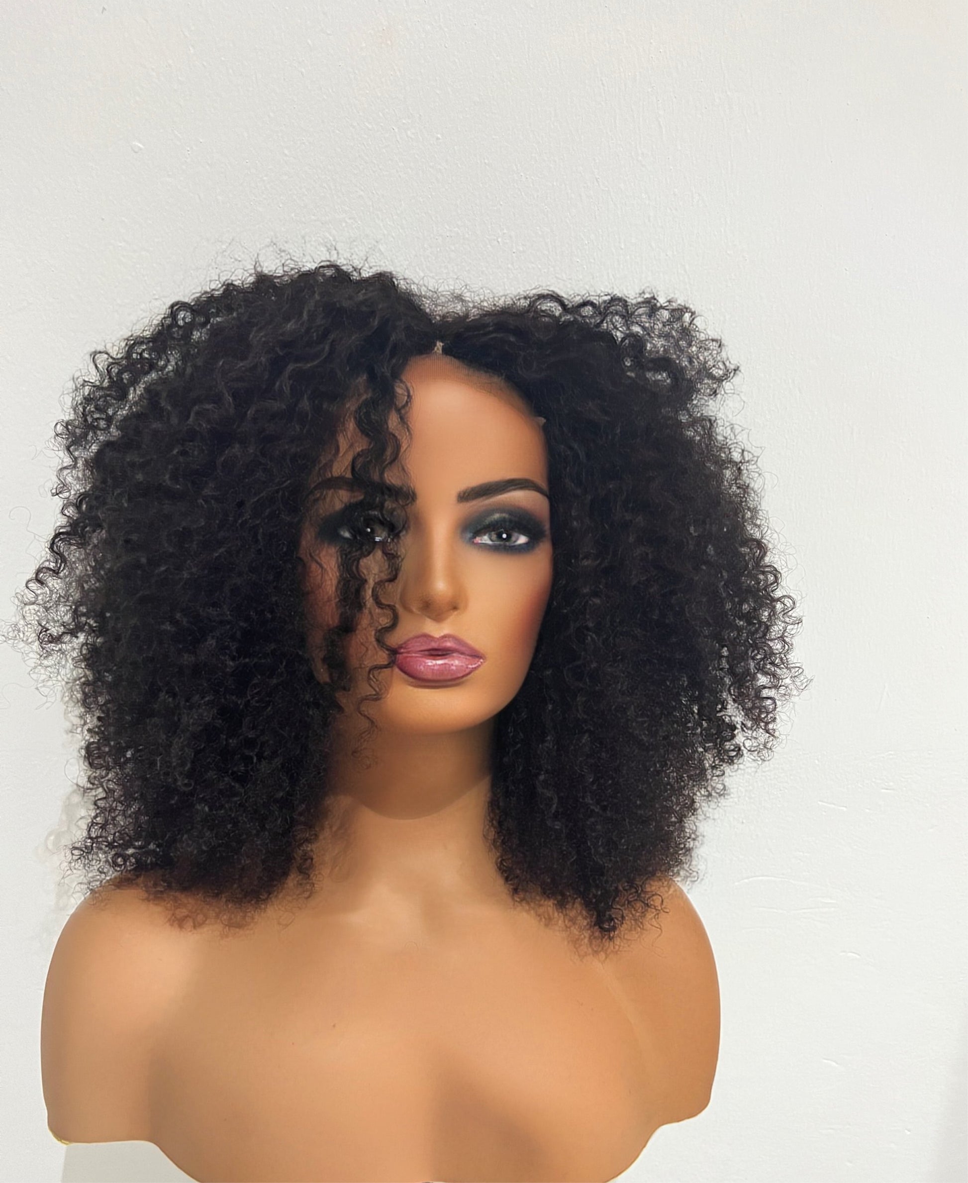 This unit is super sexy! Curly and semi kinky! Just shake it and throw it on! This wig is glueless!