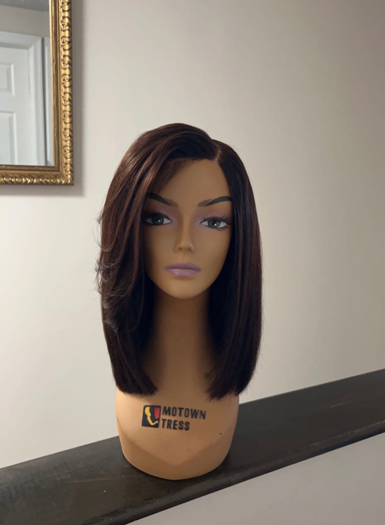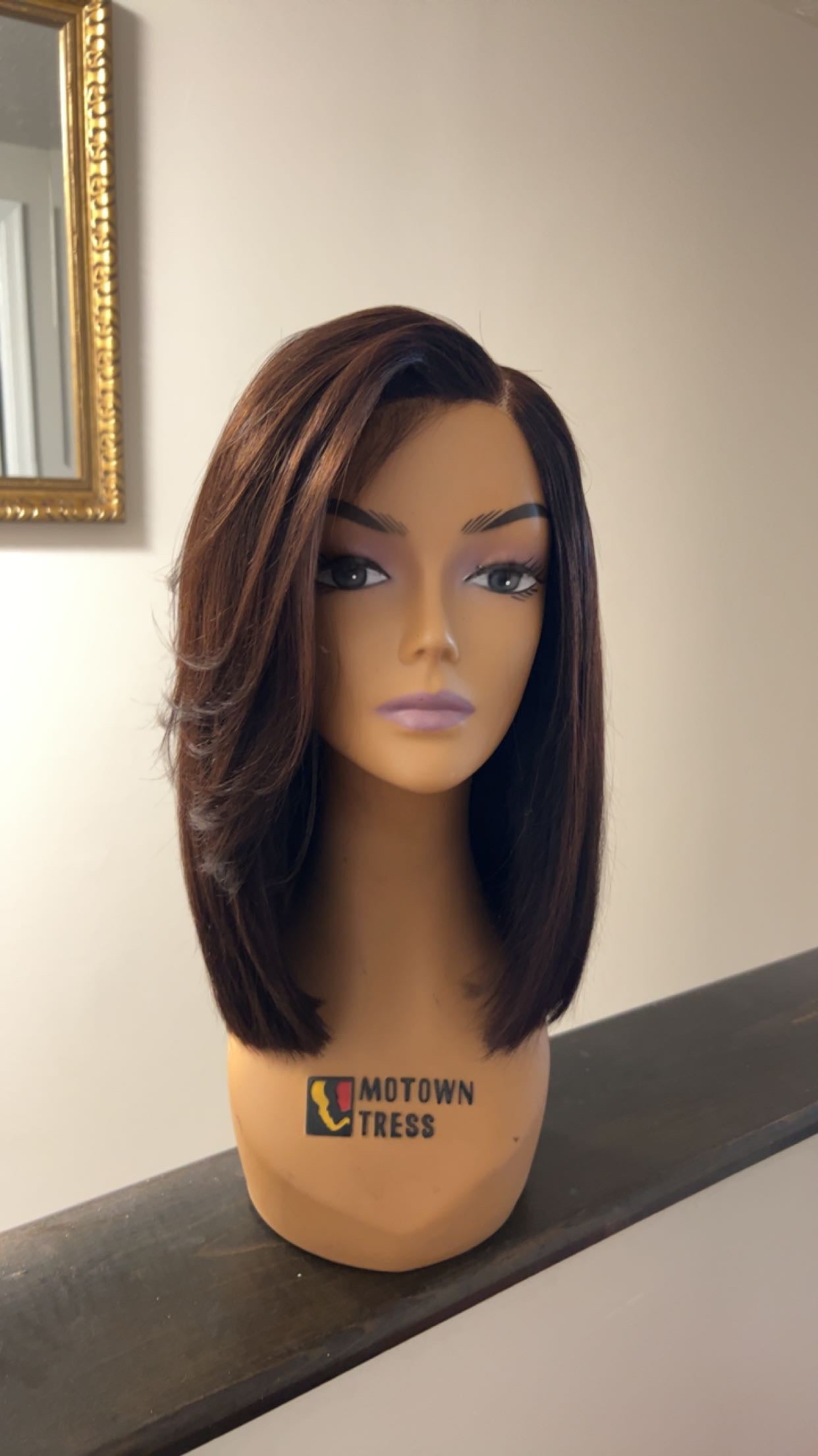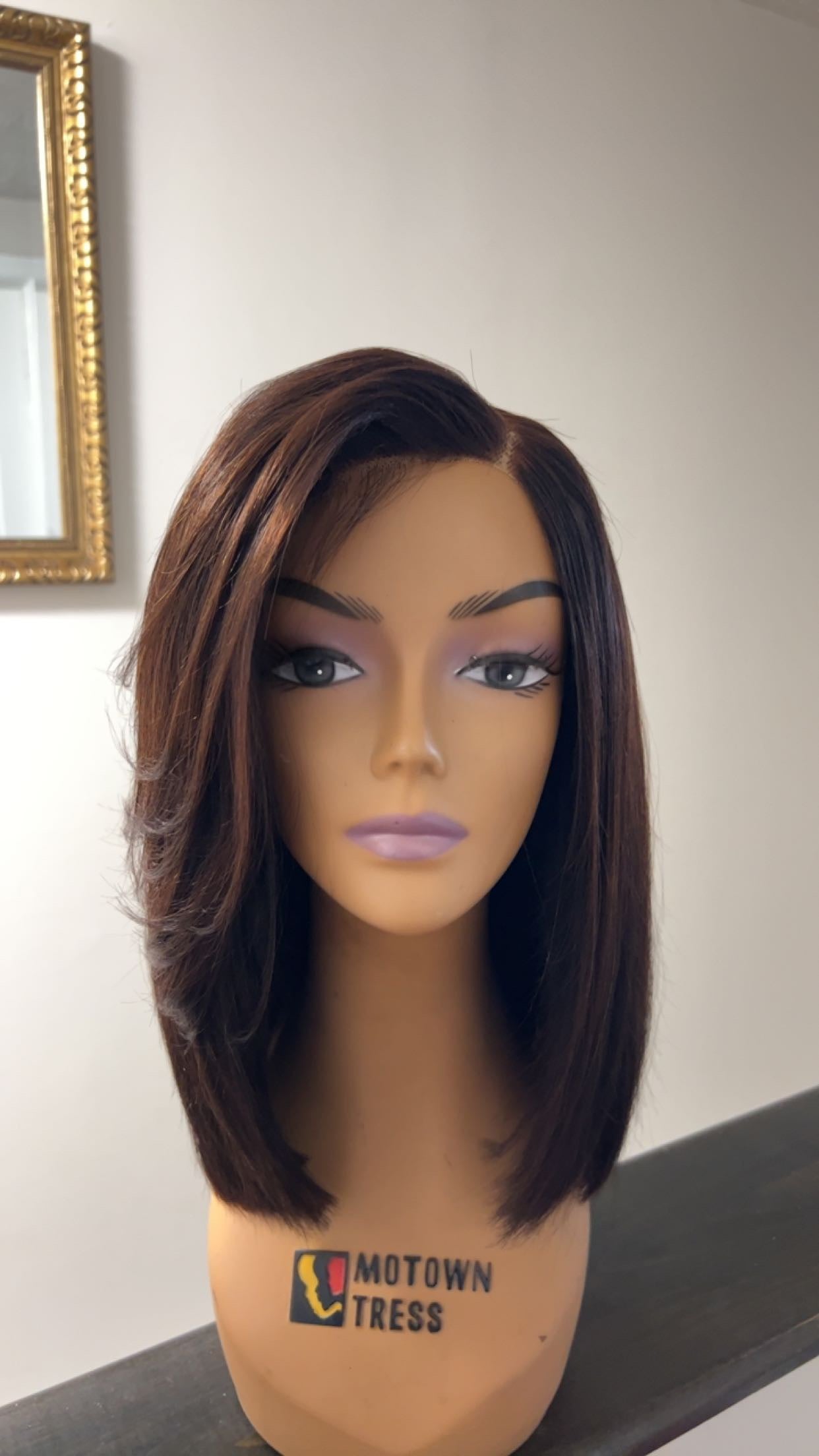 Long bob cut with a side swoop! Ready to wear. Made with a closure only! Comes with a strap for secure hold. Hair is 16” with 180% density! Swoop is cut long so that it fits customers face. Any adjustments can be made after.